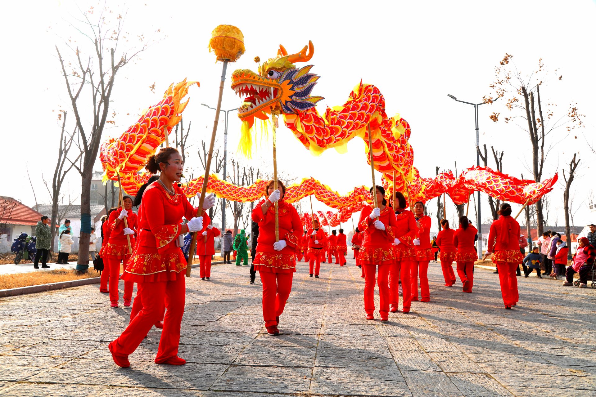 濠城鎮舞龍民俗傳承人徐紅自豪地說:“盤龍是俺們今年新創的一個節目,代表巨龍飛騰,祝福偉大的祖國繁榮昌盛、欣欣向榮。”