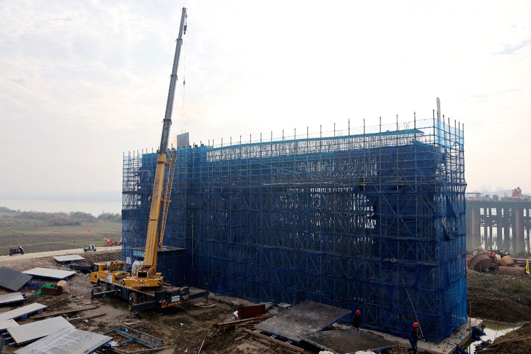 蚌埠發布客戶端訊(記者 劉晨)11月13日,司馬莊路淮河大橋及接線工程北岸現場,15號主墩開鉆,施工人員操控機械進行作業。