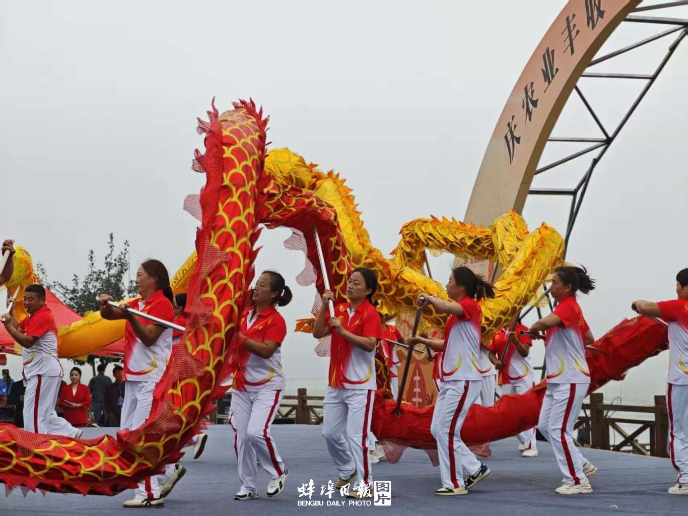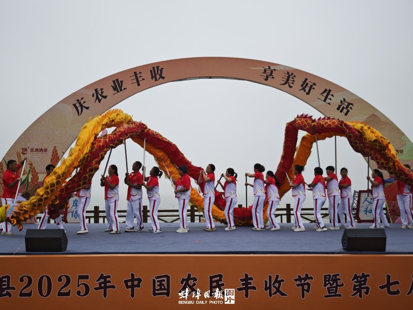激昂的《豐收鑼鼓》敲響了豐收的喜悅,磅礴的舞龍表演《龍騰盛世》舞出了新時代的豪情……開幕式上,男聲獨(dú)唱《咱老百姓》、五河民歌聯(lián)唱《豐收年唱豐收歌》等一個個飽含鄉(xiāng)土氣息的文藝節(jié)目輪番上演,生動展現(xiàn)了五河人民在希望田野上的幸福生活。