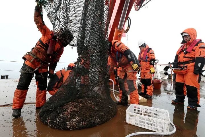 記者看到,每個站位獲取的生物樣品種類和數量各不相同。其中,海星、雪蟹、海鰓、海葵,以及管棲多毛類,是作業海域的優勢動物。