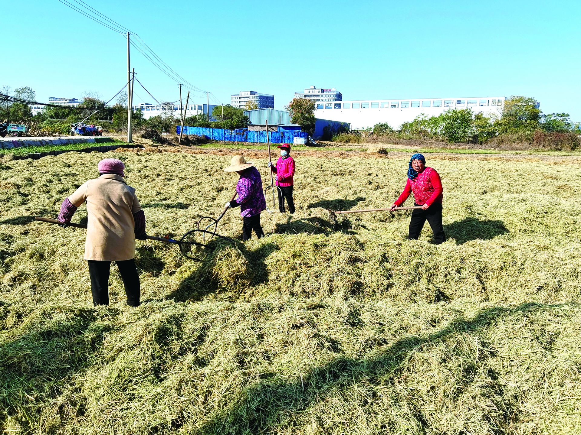 將一捆捆的稻草均勻鋪開進行晾曬,每畝地里要平鋪一米高的稻草,這正是撒菌種前最重要的準備環節。“活不重,離家近,能補貼家用,還能學到種蘑菇的新技術。”朱光愛說,在村里幫忙種蘑菇,一天能掙七十元錢,從家騎車過來只要幾分鐘,每天能準點回家吃飯、休息,還能學到自己從沒見過的蘑菇種植新技術。