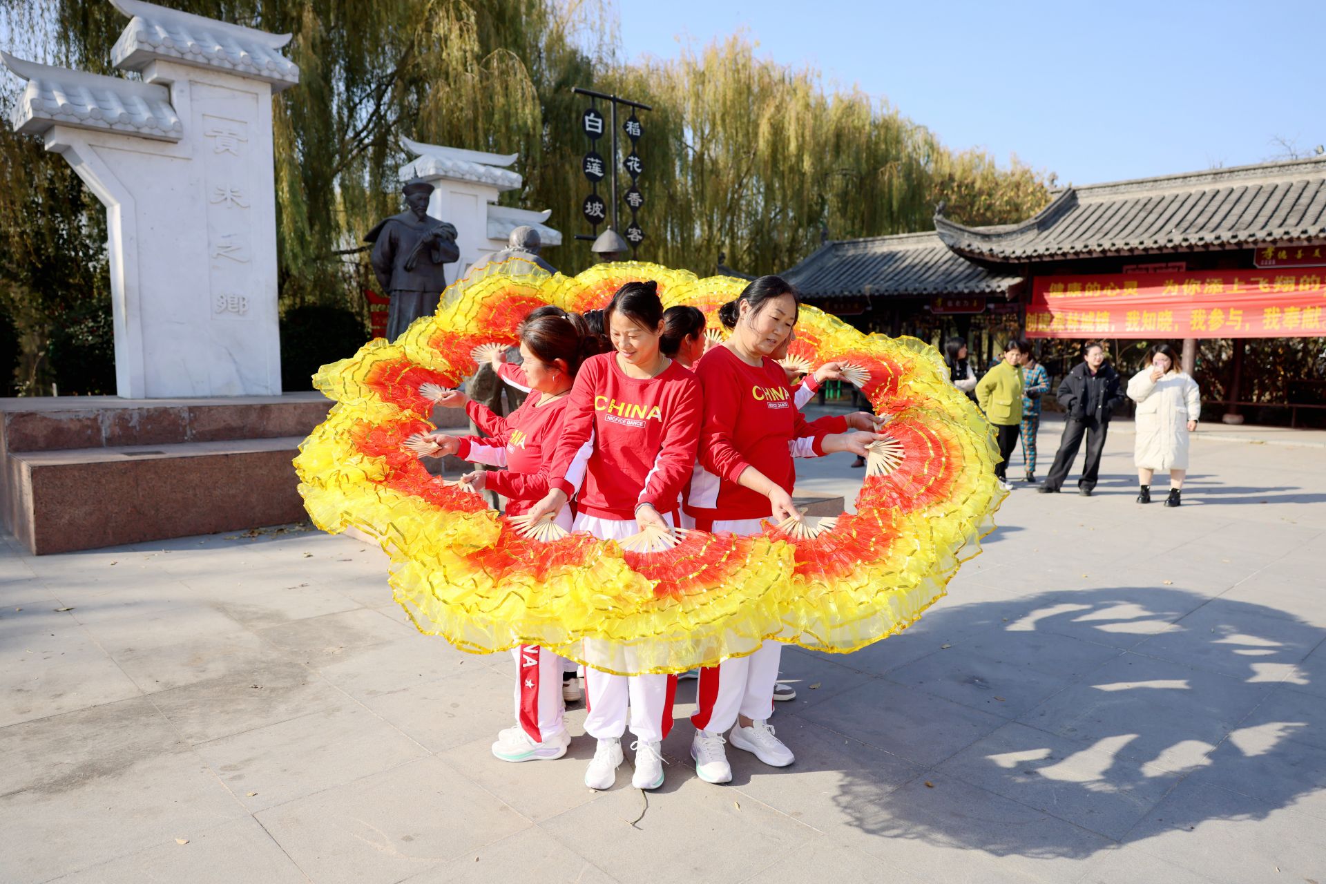 12月1日,白蓮坡鎮(zhèn)居民在鎮(zhèn)新時代文明實踐廣場跳起廣場舞。