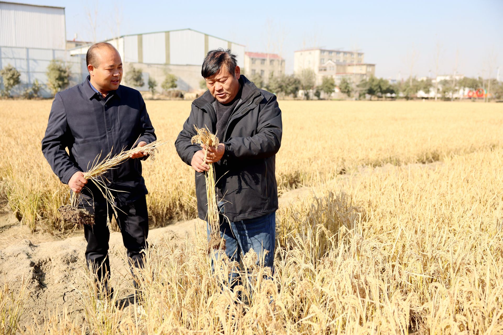 白蓮坡鎮(zhèn)種糧大戶周玉關(guān)向新莊村村干部講解自家糯稻種植情況。