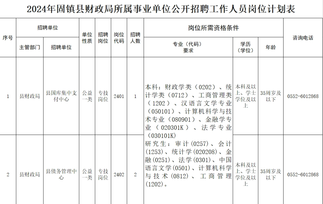 附件:2024年固鎮縣財政局所屬事業單位公開招聘工作人員崗位計劃表