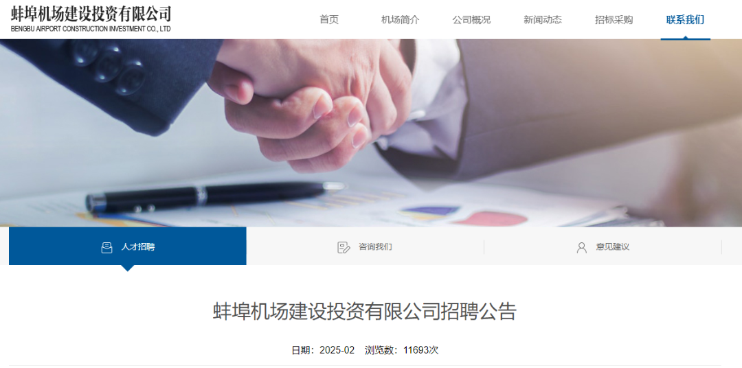 從即日起,招聘崗位等信息同時在蚌埠市人力資源和社會保障局(https://rsj.bengbu.gov.cn/)、蚌埠機場建設投資有限公司官網(http://www.bbthjc.com/)及相關媒體同步發布。