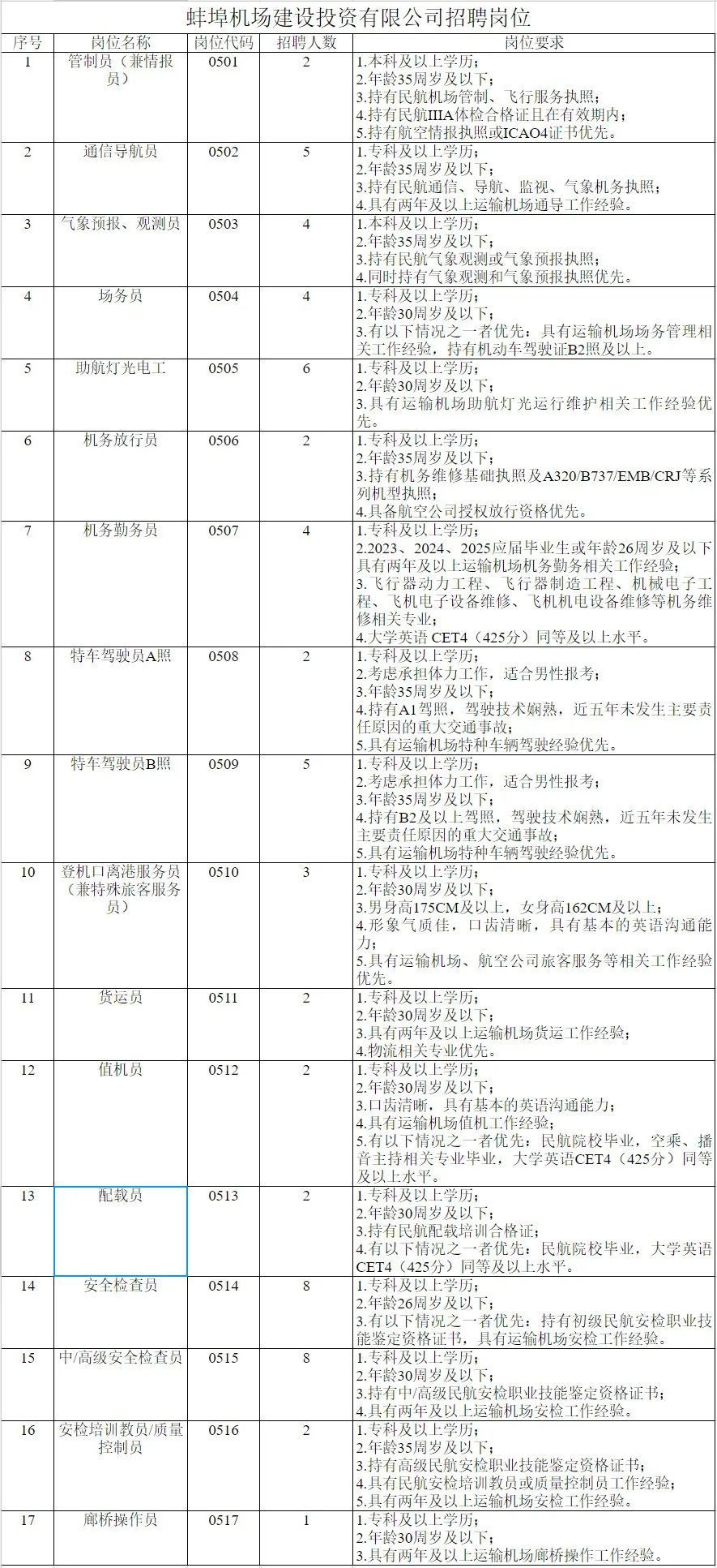 詳見蚌埠機場建設投資有限公司招聘崗位↓↓↓