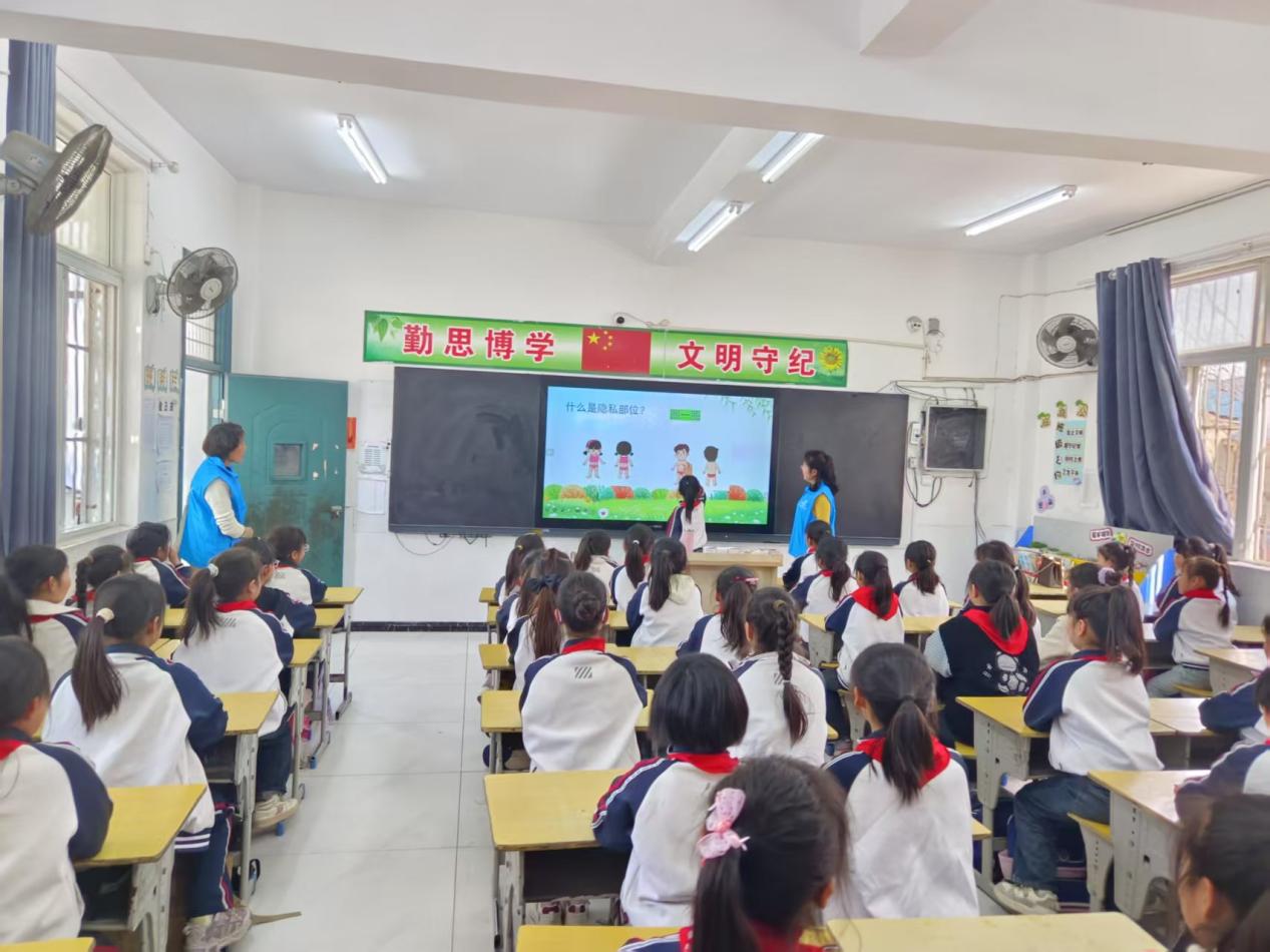 “情景模擬+互動教學”,安全知識入腦入心。活動特別邀請藍天公益社馬會長及相關志愿者擔任主講老師。課程突破傳統說教模式,通過"身體紅綠燈"課件演示、安全知識闖關游戲等趣味互動,引導孩子們認識身體隱私部位,辨別"善意觸碰"與"危險接觸"。現場的課堂互動環節中,孩子們積極參與,清脆有力的互動回答聲回蕩在教室。