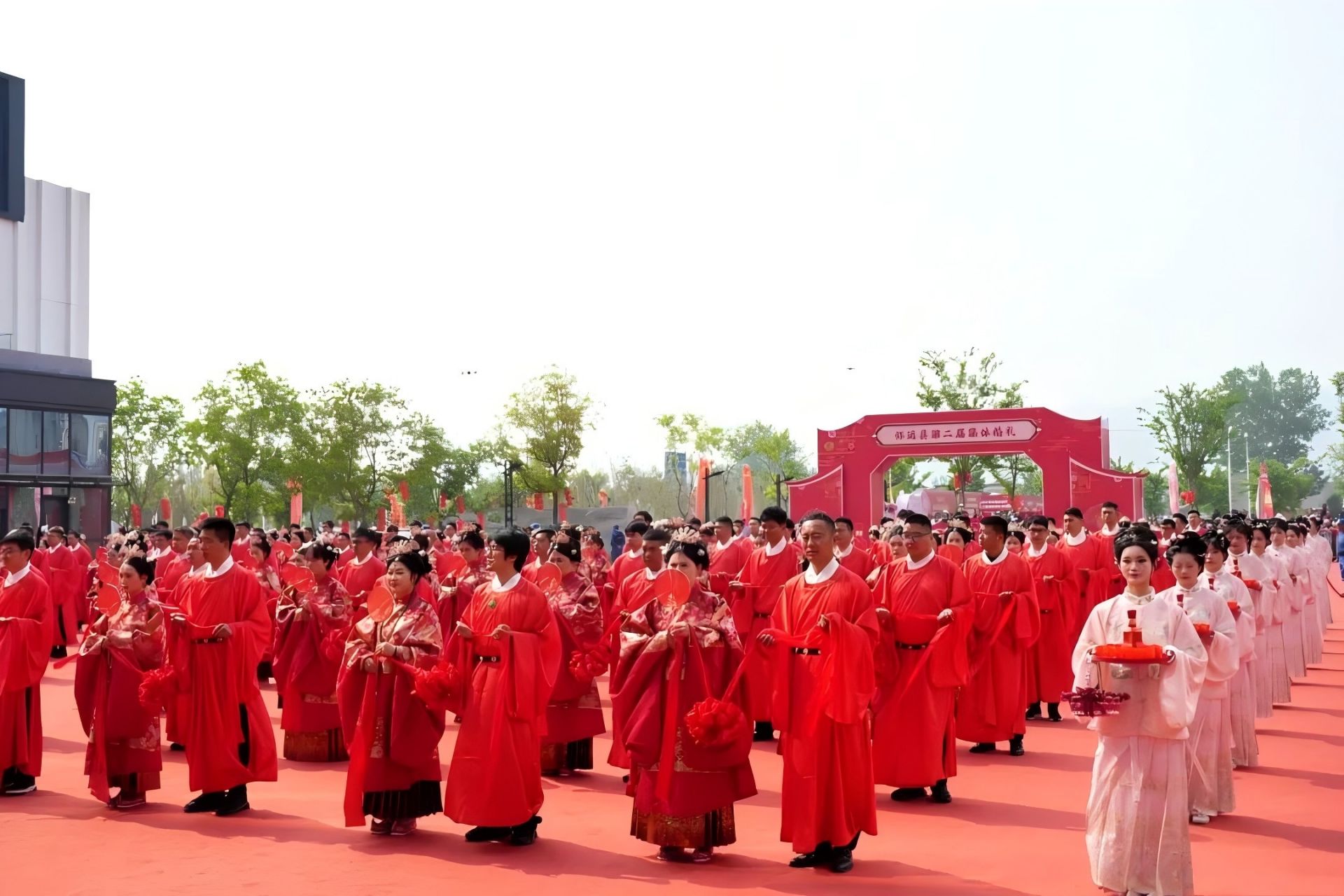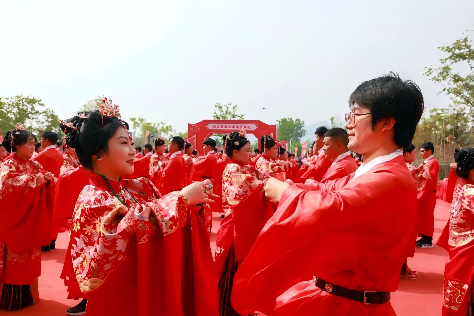 蚌埠發布客戶端訊(融媒體記者 謝勛章 通訊員 湯娟娟 文/圖)荊涂為證禹嬌戀,渦淮同舟歲月長。4月19日,以“鸞鳳和鳴·新風簡禮共良緣”為主題的懷遠縣第二屆集體婚禮在縣文化館科技館廣場拉開帷幕,100對新人身著典雅中式婚服,許下相伴一生的誓言。這場婚禮是新人們愛情的見證,也是懷遠縣推進移風易俗、樹立文明新風的重要實踐。