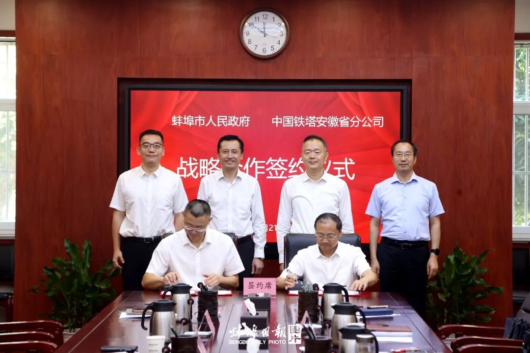 蚌埠發布客戶端訊(記者 顧楷 陳昂 文/圖)8月21日上午,市政府與中國鐵塔安徽省分公司簽署戰略合作協議。市委書記、市長馬軍出席簽約活動,并與中國鐵塔安徽省分公司黨委書記、總經理戴海兵舉行工作座談。市領導金勝慶、喬樹偉,中國鐵塔安徽省分公司黨委委員、副總經理張賢杰參加。