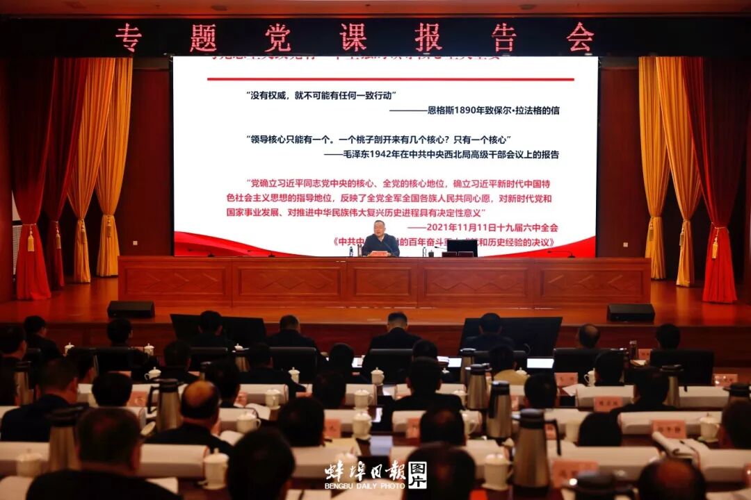 蚌埠發(fā)布客戶端訊(融媒體記者 顧楷/文 劉晨/圖)10月20日上午,市委書記、市長馬軍到市委黨校,以“用黨的創(chuàng)新理論武裝頭腦、指導實踐、推動工作,加快蚌埠振興”為題,為黨校主體班學員作專題黨課報告。市委常委、宣傳部部長李波主持報告會。