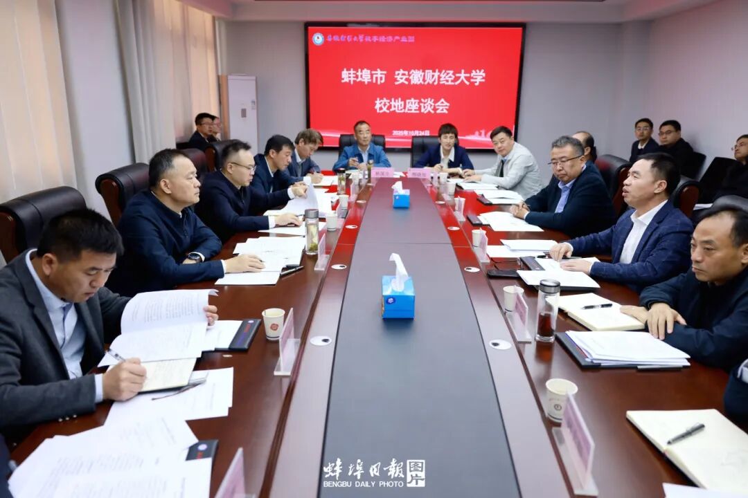 馬軍在座談中對(duì)安徽財(cái)經(jīng)大學(xué)長(zhǎng)期以來(lái)關(guān)心支持蚌埠經(jīng)濟(jì)社會(huì)發(fā)展表示感謝。他說(shuō),安徽財(cái)經(jīng)大學(xué)作為蚌埠的一張金色名片,與我市合作共建數(shù)字經(jīng)濟(jì)產(chǎn)業(yè)園,既是充分發(fā)揮蚌埠科教資源優(yōu)勢(shì)、助力產(chǎn)業(yè)轉(zhuǎn)型升級(jí)的重要舉措,也是推動(dòng)產(chǎn)學(xué)研深度融合、創(chuàng)新高校人才培養(yǎng)模式、實(shí)現(xiàn)科技成果就地轉(zhuǎn)化的生動(dòng)實(shí)踐。我們要深入學(xué)習(xí)貫徹黨的二十屆四中全會(huì)精神,著眼“十五五”規(guī)劃,不斷深化校地合作,堅(jiān)定不移推進(jìn)產(chǎn)業(yè)園建設(shè),一體推進(jìn)教育科技人才發(fā)展,助力產(chǎn)業(yè)園做大做強(qiáng)。要明確產(chǎn)業(yè)定位,聚焦“傳感器數(shù)據(jù)應(yīng)用+數(shù)字服務(wù)+AI”、安財(cái)優(yōu)勢(shì)學(xué)科、實(shí)際應(yīng)用場(chǎng)景,以龍子湖區(qū)為主承載地,全力推動(dòng)科技成果高效轉(zhuǎn)化、產(chǎn)業(yè)生態(tài)不斷優(yōu)化。要強(qiáng)化問(wèn)題導(dǎo)向,進(jìn)一步理順工作機(jī)制,堅(jiān)持高位推動(dòng),加強(qiáng)統(tǒng)籌協(xié)調(diào),強(qiáng)化屬地責(zé)任,主動(dòng)靠前服務(wù),切實(shí)發(fā)揮好科創(chuàng)基金作用,健全利益共享等機(jī)制,攜手實(shí)現(xiàn)互利共贏。要尊重知識(shí)、尊重人才,不斷加強(qiáng)與大院大所對(duì)接,多做“打基礎(chǔ)、利長(zhǎng)遠(yuǎn)”的工作,陪伴更多“金種子企業(yè)”茁壯成長(zhǎng),為安財(cái)產(chǎn)業(yè)研究和園區(qū)建設(shè)發(fā)展創(chuàng)造良好條件。