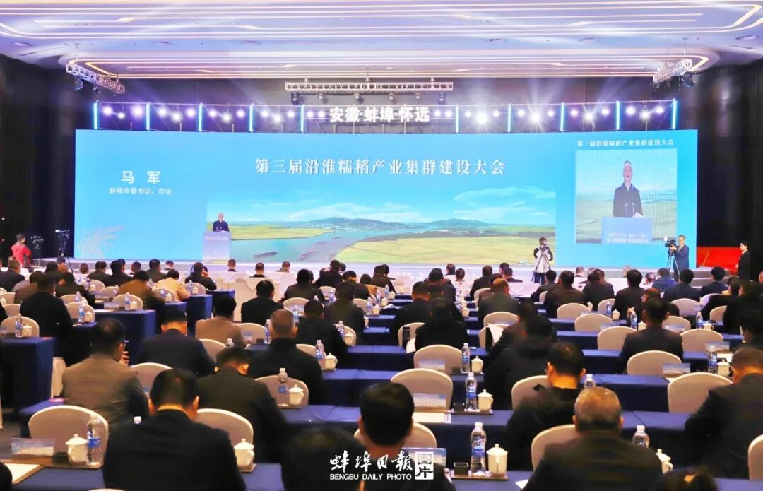 蚌埠發(fā)布客戶端訊(融媒體記者 楊露露/文 陳昂/圖)金風(fēng)送爽,糯稻飄香。11月4日,第三屆沿淮糯稻產(chǎn)業(yè)集群建設(shè)大會(huì)在懷遠(yuǎn)縣舉行。中國工程院院士萬建民,中國工程院院士、國家水稻產(chǎn)業(yè)技術(shù)體系首席科學(xué)家胡培松作主旨演講。市委書記、市長(zhǎng)馬軍出席會(huì)議并致辭,安徽省農(nóng)墾集團(tuán)有限公司黨委書記、董事長(zhǎng)張其廣,省農(nóng)業(yè)農(nóng)村廳副廳長(zhǎng)潘鑫,省委金融工委專職副書記李瑞,中國綠色食品協(xié)會(huì)監(jiān)事長(zhǎng)張華榮,安徽農(nóng)業(yè)大學(xué)黨委常委、副校長(zhǎng)江海洋,省農(nóng)科院副院長(zhǎng)戚仁德,省農(nóng)墾集團(tuán)有限公司黨委委員、總經(jīng)理助理陳軍,市領(lǐng)導(dǎo)李波、潘君齊、吳永彬及專家學(xué)者、企業(yè)家、金融機(jī)構(gòu)、投資機(jī)構(gòu)負(fù)責(zé)人出席。