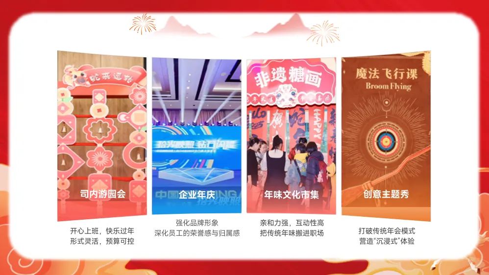 關愛通同樣精于籌辦高質量新年全案活動,打造令人難忘的員工體驗。從營造歡樂氛圍的司內游園會,到彰顯企業文化的企業年慶;從年味十足的年味文化市集,到新穎潮流的創意主題秀,關愛通均能提供從創意策劃到落地執行的一站式服務,全方位營造濃厚的新年氛圍,讓企業關懷變得可感、可觸、可分享。