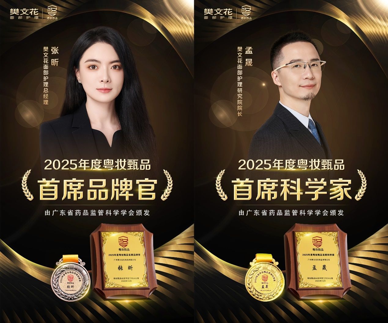 其中“樊文花嫩白水光精華液”榮獲“粵妝甄品”稱號,樊文花企業獲評粵妝名企的“研發名企”及“品牌名企”兩項榮譽,樊文花總經理 張昕 榮獲“粵妝甄品首席品牌官”,樊文花研究院院長 孟晟博士 榮獲“粵妝甄品首席科學家”。