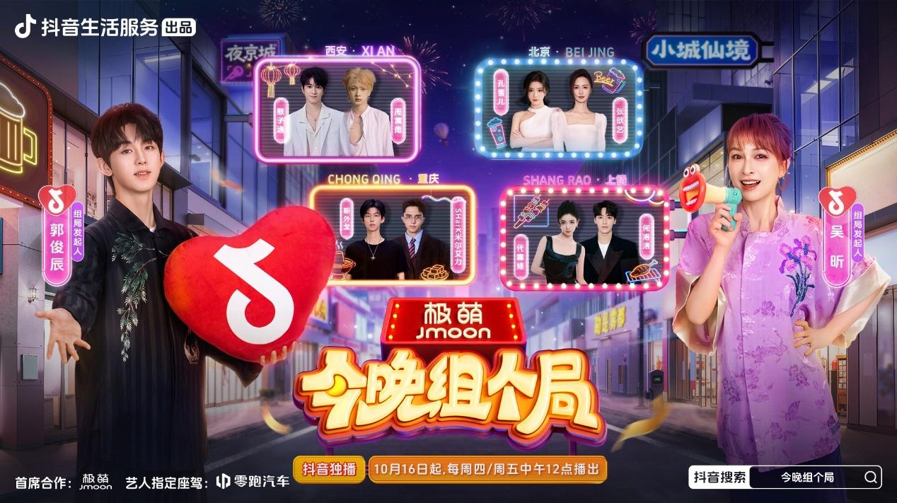 由抖音生活服務出品的全國首檔夜間潮流生活體驗小鮮綜——《今晚組個局》于10月16日正式開播。節目由吳昕、郭俊辰兩位組局發起人領銜,每期攜手兩位組局搭子,深入一座城市,在不眠之夜中,開啟一場關于“夜經濟 + 情緒解壓”的沉浸式體驗。