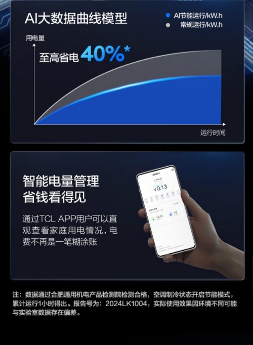 冬季空調整夜開,“電費”是不少家庭的顧慮,TCL小藍翼P7 AI健康空調的AI省電搭載超省電AI大數據模型算法2.0,能智能調節空調運行頻率,制冷制熱均能省電,至高省電40%;同時達到超一級能效標準,APF值高達5.6,遠高于新一級國家能效標準,長期使用更節能。通過TCL APP,用戶還能直觀查看家庭用電情況,電費不再是“糊涂賬”,讓用戶在享受溫暖與鮮氧的同時,不用為電費發愁。