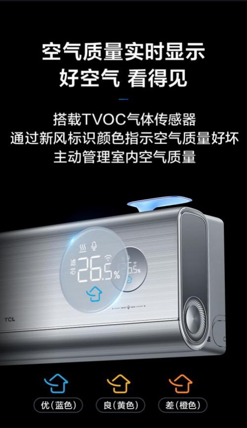 TCL小藍翼P7 AI健康空調搭載四重HEPA濾芯,納米級大小的濾孔能層層過濾PM2.5、細菌病毒等污染物,同時,內置TVOC氣體傳感器,可實時檢測甲醛等多種居家常見有害氣體,并通過機身指示燈顏色直觀顯示空氣質量:藍色代表優、黃色代表良、橙色代表差,好空氣看得見,讓用戶對室內空氣狀況了如指掌,呼吸更安心。