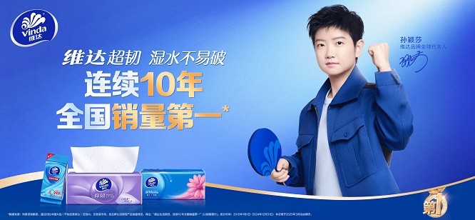面對(duì)消費(fèi)市場(chǎng)的高端化、個(gè)性化趨勢(shì),維達(dá)持續(xù)推動(dòng)產(chǎn)品創(chuàng)新與品牌升級(jí)。近年來(lái),維達(dá)品牌先后攜手線條小狗、Chiikawa、哪吒2、熊出沒(méi)、蘇超等國(guó)內(nèi)外頭部IP,并于2025年官宣孫穎莎為維達(dá)品牌全球代言人,為“維達(dá)紙巾連續(xù)10年全國(guó)銷量第一”進(jìn)行定位夯實(shí)。