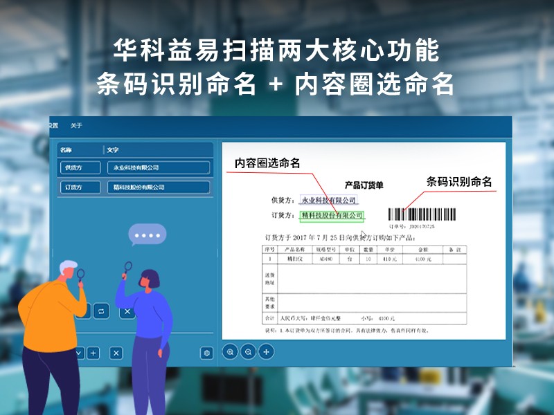 這樣的困境在車間生產、質檢審核、財務對賬等環節反復上演:人工錄入慢、單據格式雜難適配、數據錄完還要手動導系統,層層阻滯著企業數字化落地的節奏。而華科益易掃描軟件的出現,以 “條碼識別命名 + 內容圈選命名” 兩大核心功能,用輕量化工具精準破解行業沉疴,成為制造業降本增效的實用型利器。