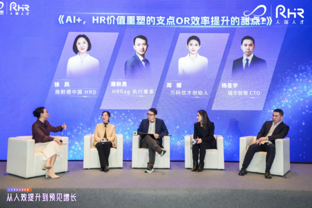 隨后施耐德中國人力資源總監(jiān)徐鳳、HRflag執(zhí)行董事唐秋勇、萬碼優(yōu)才創(chuàng)始人周媛、瑞華智策CTO楊星宇等圓桌嘉賓,圍繞“AI+,HR價值重塑的支點(diǎn)or效率提升的甜點(diǎn)?”展開激烈思辨。討論聚焦AI在HR領(lǐng)域的確定性價值、落地場景選擇、變革中HR的核心角色及AI應(yīng)用ROI理性評估等核心議題,嘉賓們從實(shí)踐落地、技術(shù)賦能、價值邊界等維度碰撞出諸多前沿觀點(diǎn),為現(xiàn)場觀眾帶來多元啟發(fā)。