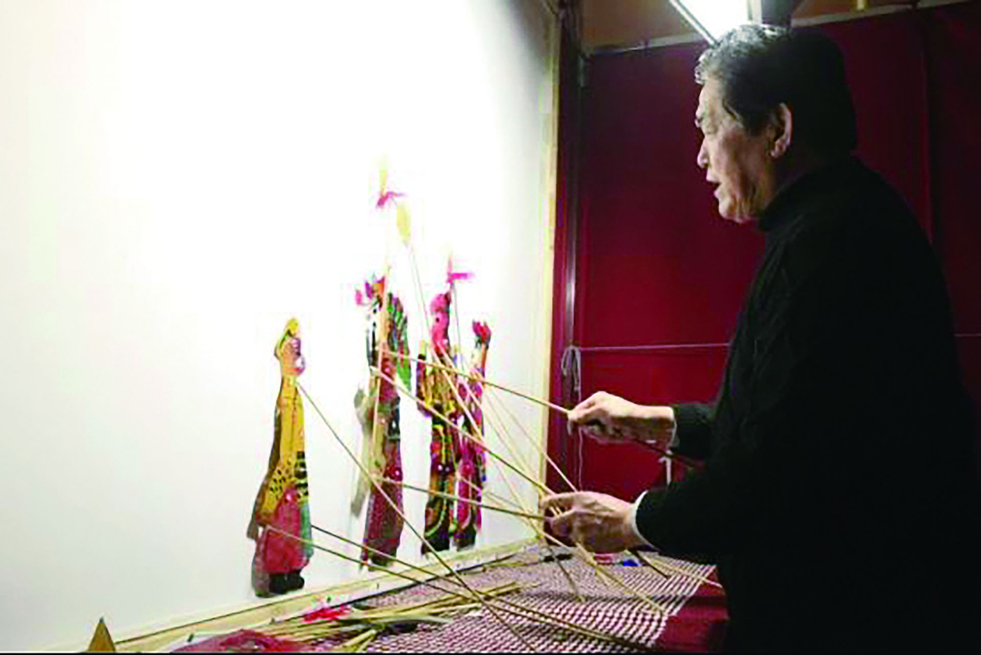 安徽省非物質(zhì)文化遺產(chǎn)余家皮影戲第三代傳承人余家坤在進(jìn)行皮影表演。