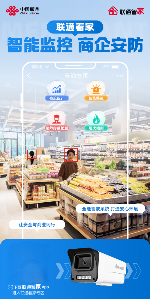 面向店鋪監控、社區安防、鄉村治理等場景,聯通看家的AI功能,亦能派上大用場,為人們的工作和生活創造了便利。