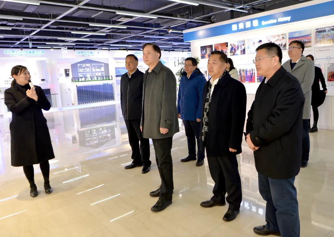 在青島市,黃曉武先后考察了青島金晶股份有限公司和青島國際院士港氫雄燃料電池有限公司等企業。