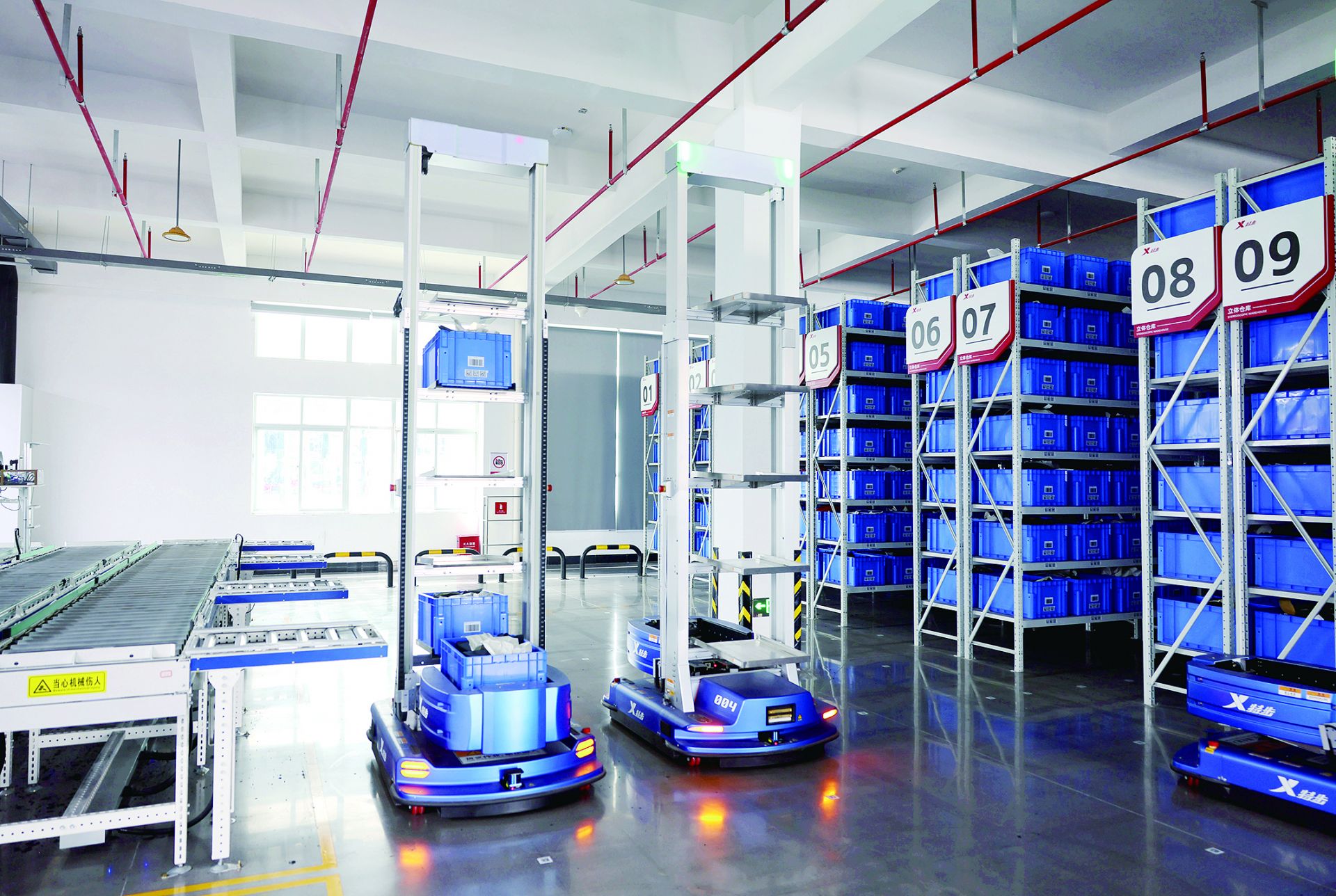 特步5G工廠機器人正在進行自動運輸。 融媒體記者 劉晨 攝
