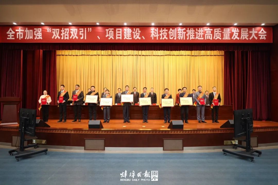 大會先后通報表彰了2024年度50家“蚌埠市經濟高質量發展貢獻獎先進集體”單位、150名“蚌埠市經濟高質量發展貢獻獎先進個人”以及50家“蚌埠市社會發展貢獻獎先進集體”、150名“蚌埠市社會發展貢獻獎先進個人”,稅收貢獻30強企業,希望受到表彰的先進集體和個人珍惜榮譽、再接再厲,充分發揮模范帶頭作用,不斷創造新的佳績,激勵全市各級各部門和廣大干部職工要以先進典型為榜樣,聚焦打造“三地一區”兩中心戰略定位,勇于擔當、積極作為、開拓創新、銳意進取,進一步堅定信心、振奮精神,全身心投入到中國式現代化幸福蚌埠建設中,為推動蚌埠高質量跨越式發展而努力奮斗。