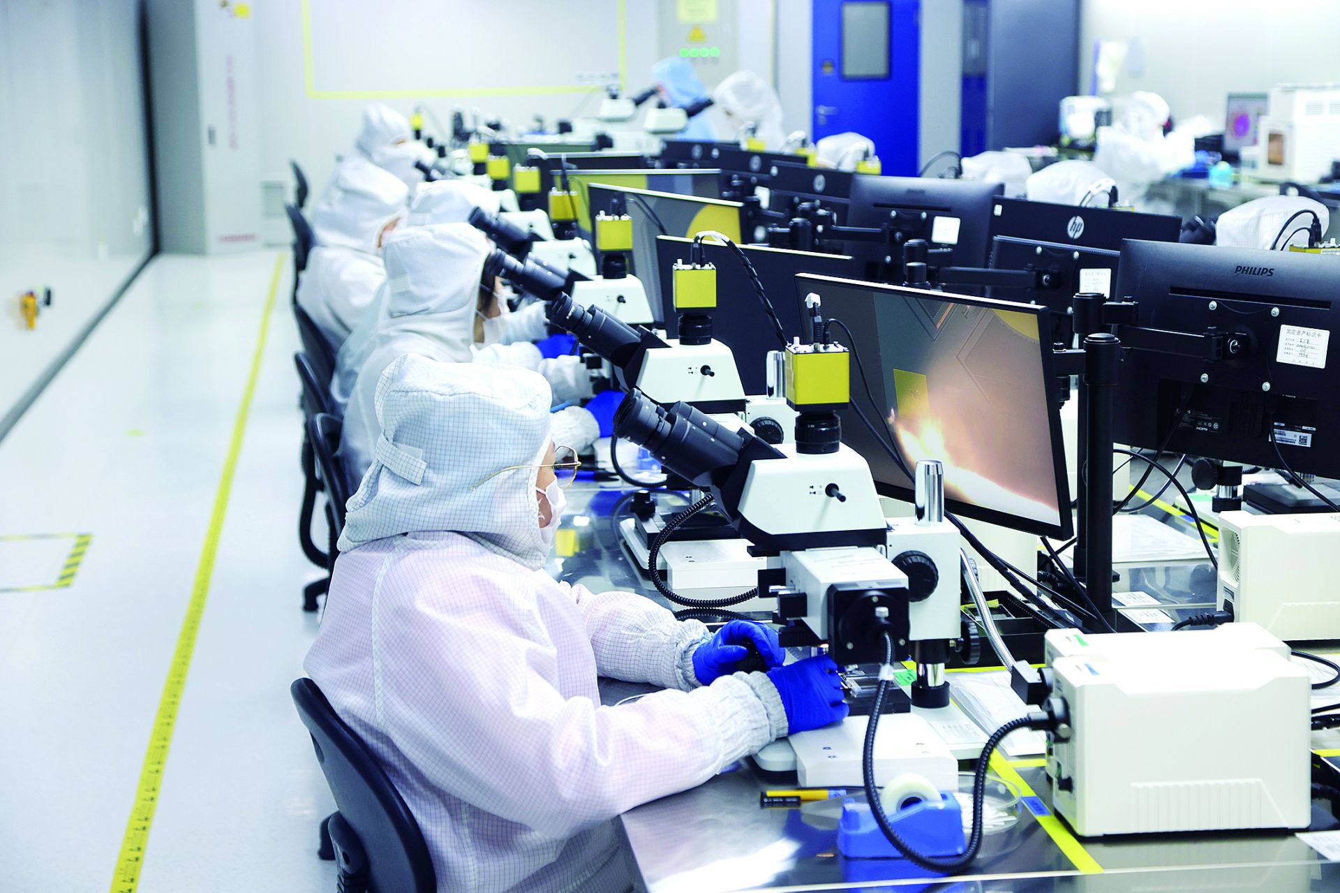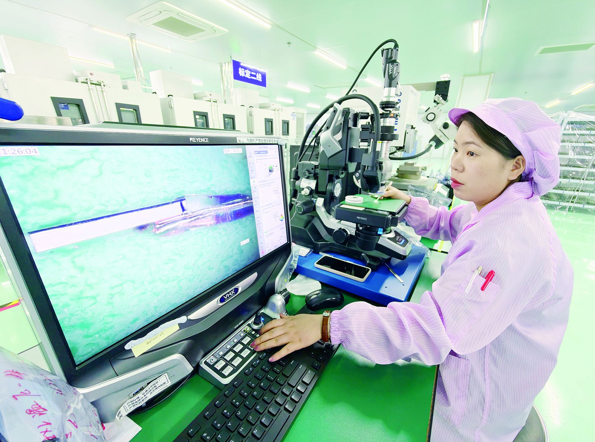 9月10日,安徽京芯傳感科技有限公司生產(chǎn)車間,工作人員使用光學(xué)顯微鏡對產(chǎn)品進行檢測。該公司專注于MEMS(微機電系統(tǒng))傳感器的研發(fā)、生產(chǎn)與銷售,核心業(yè)務(wù)涵蓋集成電路設(shè)計、芯片制造、封裝測試及模組集成,產(chǎn)品廣泛應(yīng)用于醫(yī)療、汽車、工業(yè)控制等領(lǐng)域。