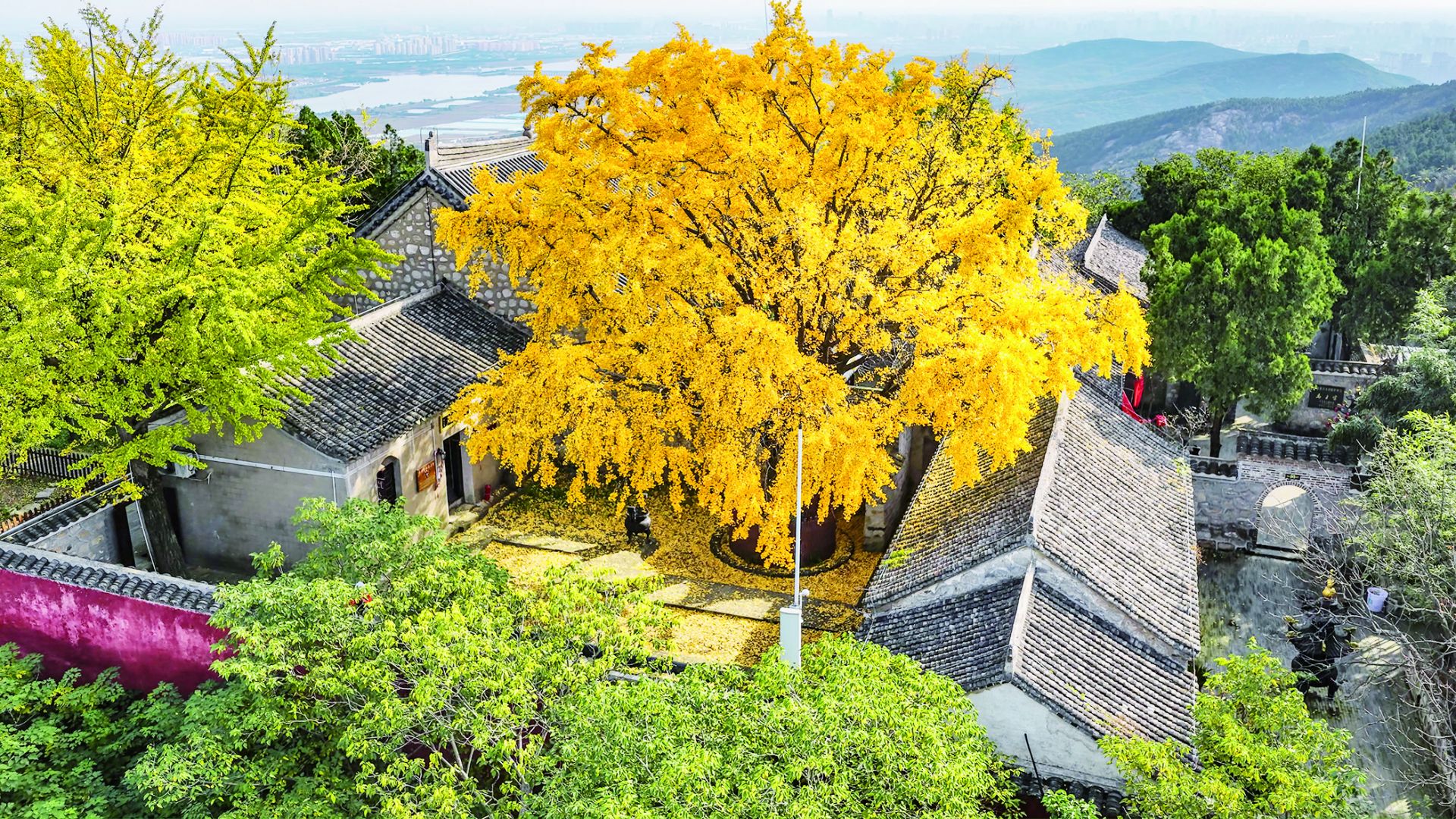 近日,蚌埠涂山之巔禹王宮秋景正盛。千年古殿前的古銀杏滿樹金黃,金葉隨風灑落石階。古建與秋景相映,盡顯深秋浪漫。