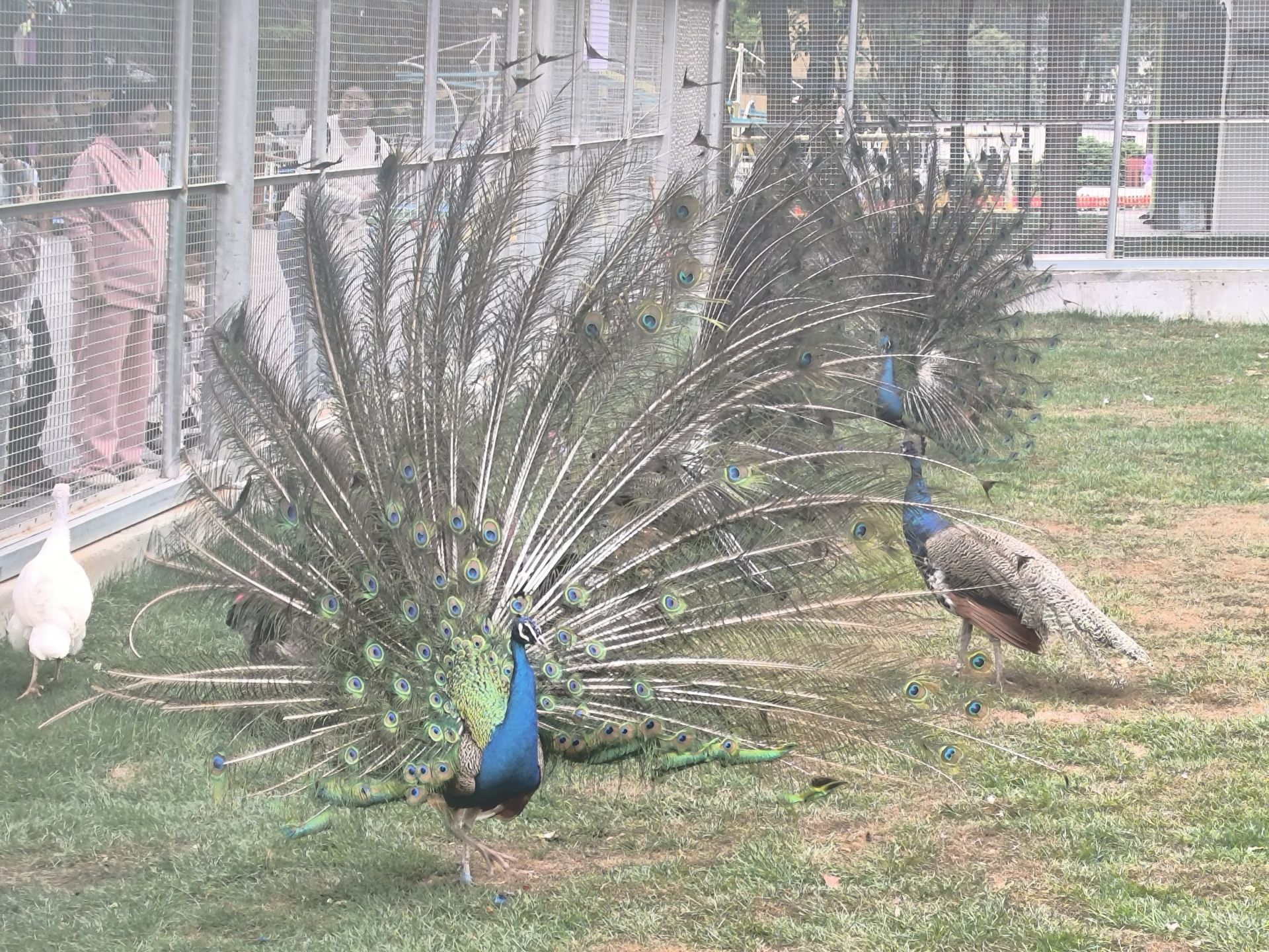原本分隔為多個小籠舍的禽鳥區域,現在孔雀、火雞、環頸雉等共同生活在一片大籠舍里,不僅面積更大,而且高度也增加不少。我們經過時,好幾只孔雀正在一起開屏。