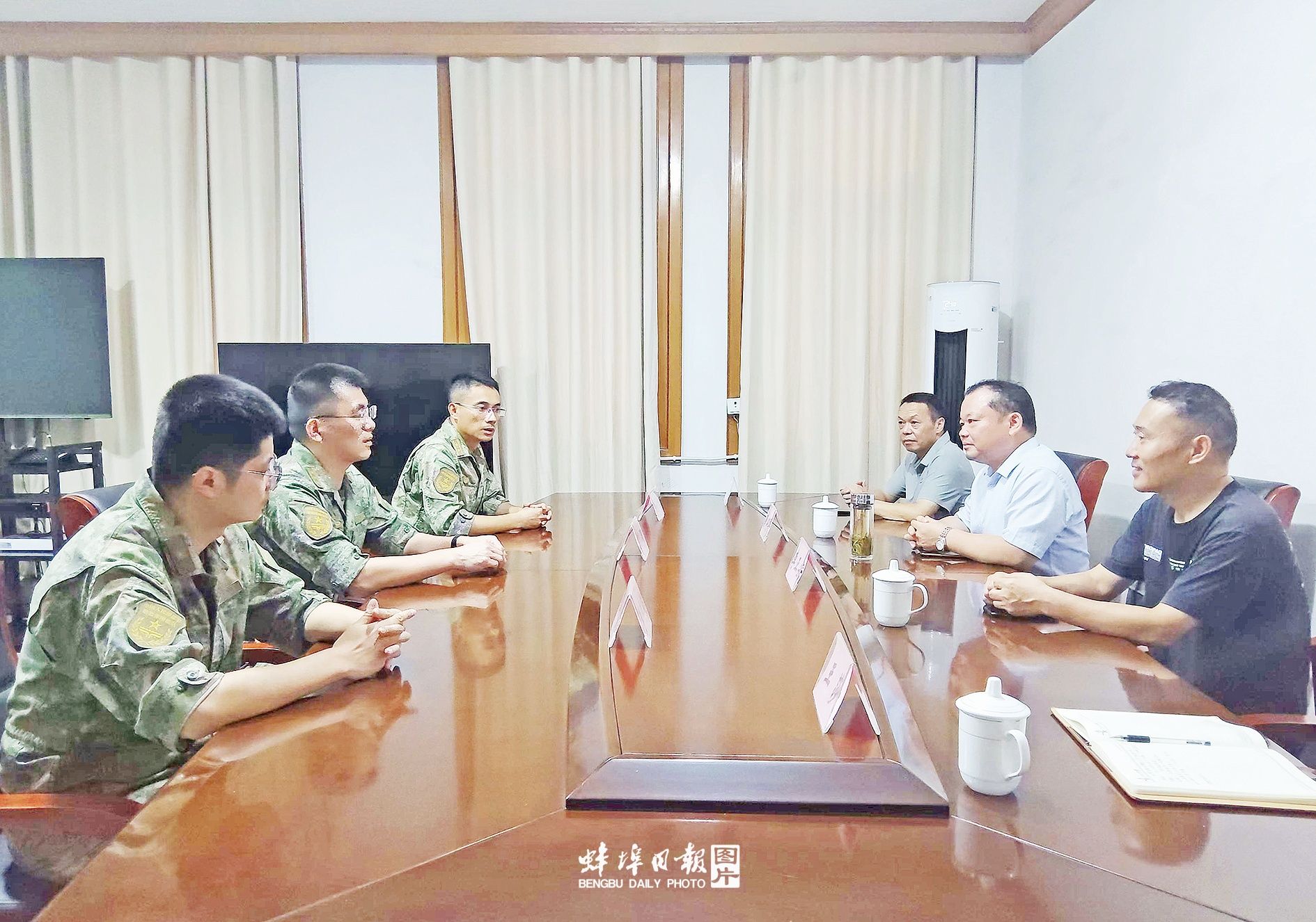 7月28日“八一”前夕,312地質隊黨委書記唐建華率隊赴阜陽軍事代表室慰問,雙方交流熱烈,共話軍民情誼、展望雙擁共建新篇。王莎 攝