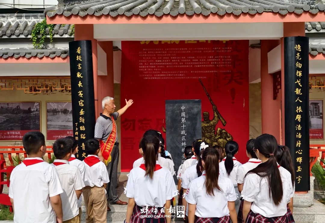 蚌埠市關工委五老報告團、龍子湖區關工委五老報告團與蚌埠市鳳陽路第一小學師生走進抗戰勝利公園,開展愛國主義教育活動。