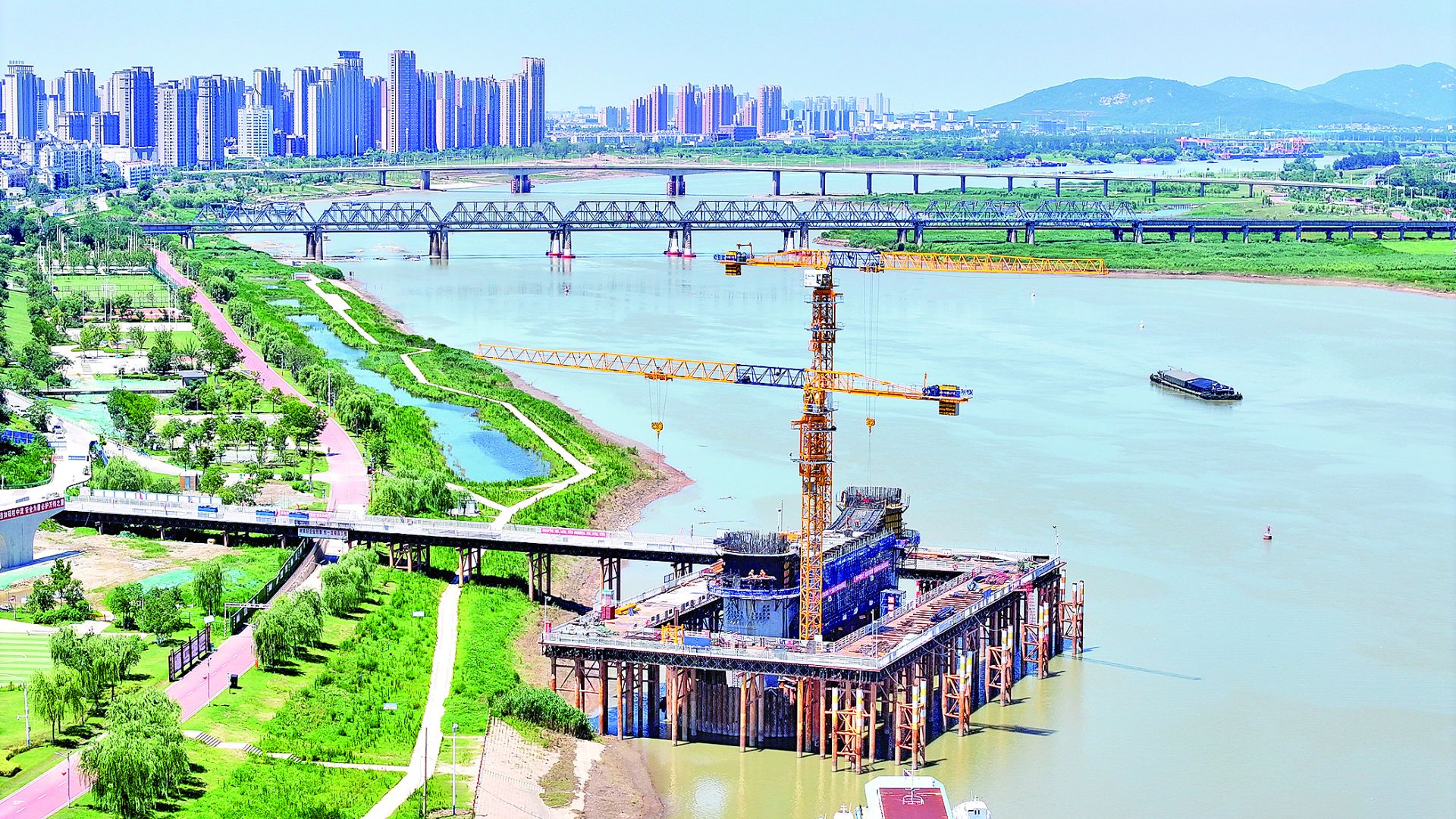 延安路淮河大橋及接線工程主塔下橫梁施工完成